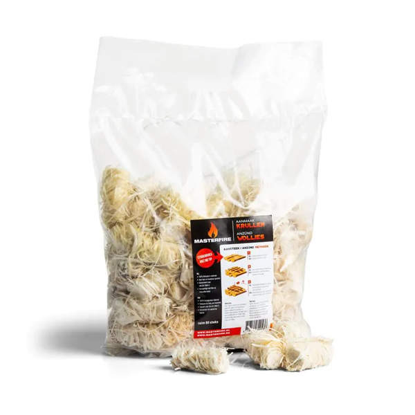 Aanmaak wolletjes gemaakt van geschaafd berkenhout voorzien van een vleugje, natuurlijke wax. Ideaal om bijvoorbeeld de kachel, tuinhaard of BBQ mee aan te steken. Bij verbranding ontstaat geen onwenselijke geur of rook. Deze zak aanmaakkrullen bevat circa 80 firestarters (1 kg), genoeg om lekker vaak fikkie te stoken! Er is slechts 1 aanmaakkrul nodig voor het starten van open haarden, kachels, barbecues, houtbranders en kolen bij gebruik met aanmaakhout.