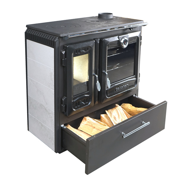 Een multifunctionele houtkachel, die grotere ruimtes kan verwarmen tot wel 84 m2 door zijn hoge energie-efficiëntie, maar tegelijkertijd kun je deze houtkachel ook gebruiken als fornuis en oven. Je haalt echt het maximale uit elk stuk hout dat je erin stopt. De houtkachel met oven beschikt over een keramisch dubbelwandige thermische isolatielaag aan zowel de rechter- als linkerkant, zodat deze houtkachel met oven geschikt is voor inbouw in je keuken.