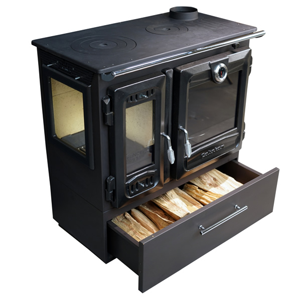 Een multifunctionele houtkachel, die grotere ruimtes kan verwarmen tot wel 84 m2 door zijn hoge energie-efficiëntie, maar tegelijkertijd kun je deze houtkachel ook gebruiken als fornuis en oven. Je haalt echt het maximale uit elk stuk hout dat je erin stopt. Deze houtkachel beschikt tevens over een handige opberglade voor al je houtblokken, zodat je die direct bij de hand hebt.