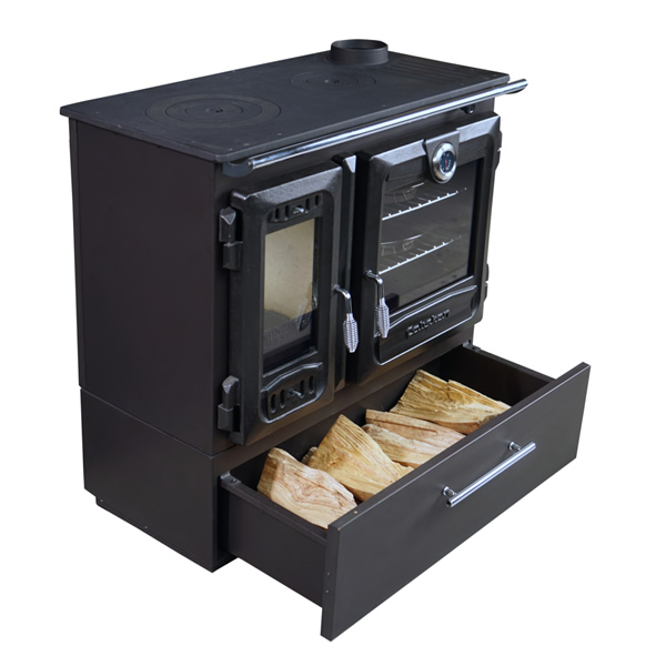 Een multifunctionele houtkachel, die grotere ruimtes kan verwarmen tot wel 84 m2 door zijn hoge energie-efficiëntie, maar tegelijkertijd kun je deze houtkachel ook gebruiken als fornuis en oven. Je haalt echt het maximale uit elk stuk hout dat je erin stopt. Deze houtkachel beschikt tevens over een handige opberglade voor al je houtblokken, zodat je die direct bij de hand hebt.