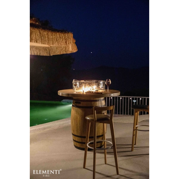 Met de Statafel Elementi Lafite Barrel (gas) haal je een stijlvolle gashaard naar je terras of tuin die ook als statafel functioneert.