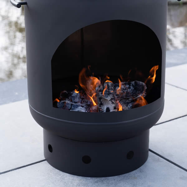 De matzwarte versie van de buitenhaard ziet er ruig uit, maar steelt je hart door zijn kleur en omvang. De buitenhaard is voorzien van een coating laag die na veel en intensief gebruik nog steeds zijn schitterende matte kleur behoudt.