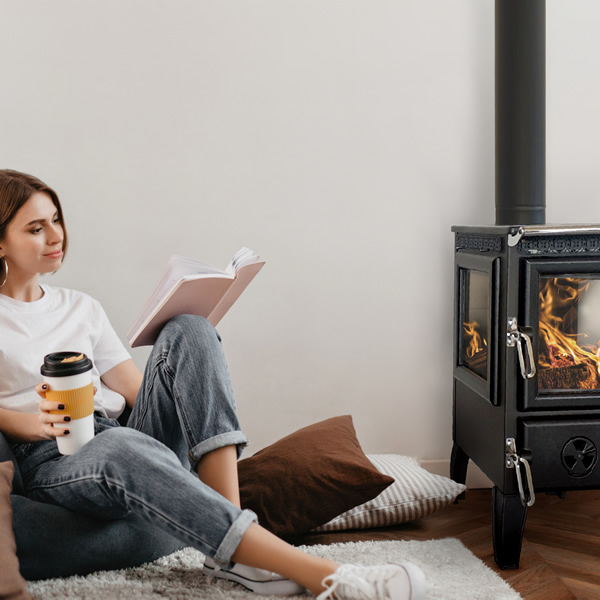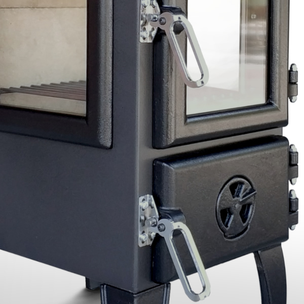 - Het verwijderbare gietijzeren rooster en de aslade maken het gemakkelijk om de kachel schoon te houden.