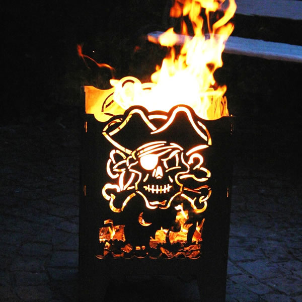 Een extra sfeer element is de motief in de vorm van een Piraat in de metalen zijwanden van de vuurkorf. Hierdoor krijgt vooral in het donker de Vuurkorf een sfeervolle uitstraling.