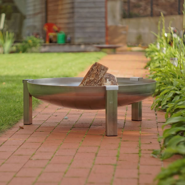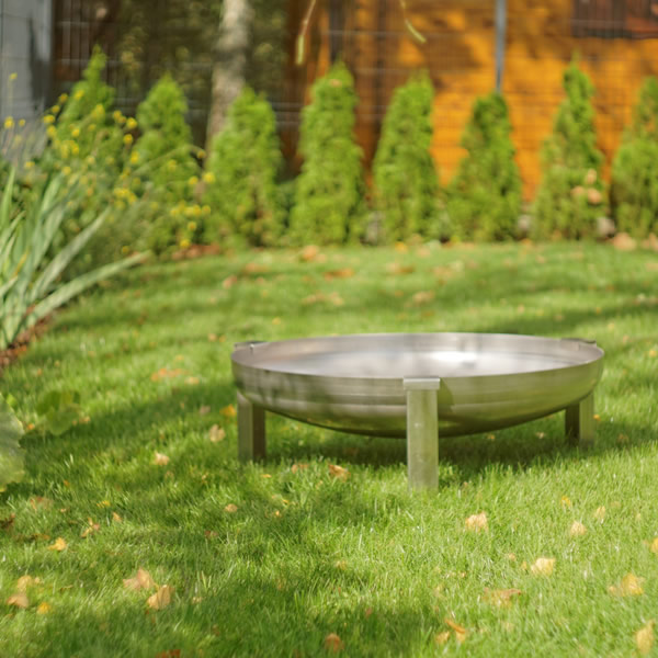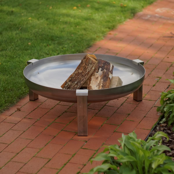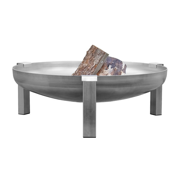 De solide vuurschaal staat op een onderstel van RVS afgewerkt met edelstaal applicatie.