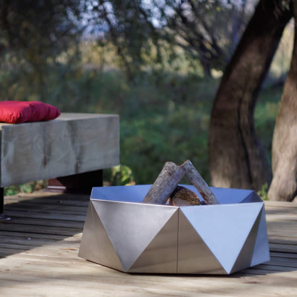 Bijzondere exclusieve vuurschaal Junda van massief Edelstaal RVS van 2.0 mm dik, is handgemaakt en is een absolute noviteit en een echte aandachtstrekker. Zelfs zonder brandend haardhout valt deze vuurschaal nog op!