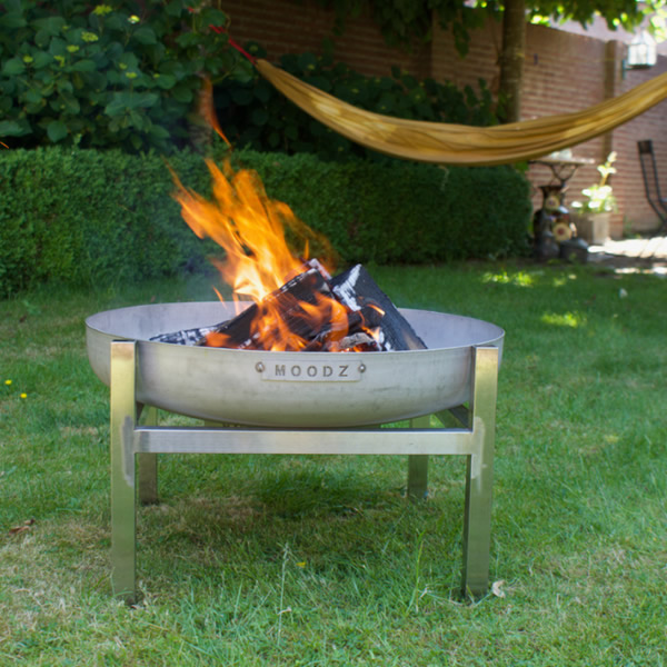 De meeste vuurschalen kunnen niet het hele jaar buiten blijven staan, maar dit geldt niet voor deze Moodz vuurschaal. De vuurschaal is namelijk vervaardigd uit 3 mm dik RVS. De schaal is tevens voorzien van afwateringsgaten die ervoor zorgen dat regenwater eenvoudig uit de schaal kan lopen. Zo ben je ervan verzekerd dat de vuurschaal wel even mee gaat.