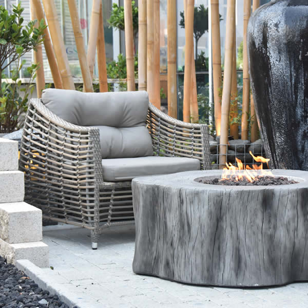 Prachtige stijlvolle vuurtafel op gas met een boomstamlook van het exclusieve merk Elementi. Deze vuurtafel is een echte eyecatcher. Deze decoratieve vuurtafel gemaakt van hoogwaardig vezel-versterkt betonmateriaal gebruik je als tafel buiten om je glazen en snacks op te zetten én om te genieten van en gezellig vuurtje.
